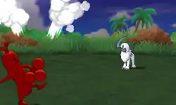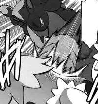 When Midnight Form Lycanroc gets hit by an attack, it punches the opponent, or when Midnight Form Lycanroc is about to be hit by an attack, it becomes covered in a light blue or light red aura and punches or throws the opponent. | ||