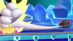 When Mudsdale is hit by the opponent's attack, it stomps on the opponent with one of its front hooves. | ||
