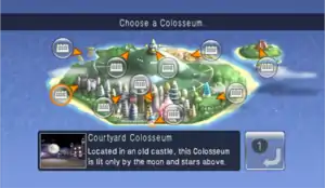 The player can quicksave just like any other Colosseum, but the way the player gets Poké Coupons is different. Instead of having to beat all 100 Trainers in this Colosseum, a player can choose to quit right after beating a Trainer (rather than quicksave or continue), and collect a sum of Poké Coupons.