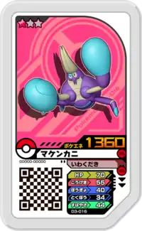 Crabrawler (Japanese: マケンカニ Makenkani) is a Grade 1 Pokémon Ga-Olé disk. It is part of the third Dash set.