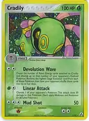 Cradily (Japanese: ユレイドル Yuradle) is a Grass-type Stage 2 Pokémon card. It is part of the EX Legend Maker expansion.
