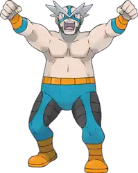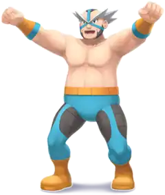 Crasher Wake (Japanese: マキシマム仮面 Maximum Mask), otherwise known simply as Wake (Japanese: マキシ Maxi), is the Gym Leader of Pastoria City's Gym, known officially as the Pastoria Gym. He hands out the Fen Badge to Trainers who defeat him. He specializes in Water-type Pokémon.
