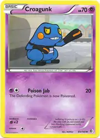 Croagunk (Japanese: グレッグル Gureggru) is a Psychic-type Basic Pokémon card. It was first released as part of the Boundaries Crossed expansion.