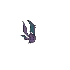 Crobat is a purple, bat-like Pokémon with a small, round body. It has long, pointed ears, yellow eyes with red pupils, and a small mouth that usually has its teeth bared. On its body are two pairs of wings: an upper pair that is slightly larger and a lower pair that developed from its legs. Both pairs have green-blue membranes, but the lower pair's membranes are only visible from the back. The upper wings have two claw-like fingers near the middle. On the bottom of its body are what appear to be a pair of stubby feet or tufts of fur.