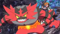 Incineroar was used in a battle against Ash and battled Charmeleon, eventually defeating it. Incineroar was later used in a rematch; Charmeleon evolved into Charizard, which led to Incineroar's defeat. Incineroar's known moves are Flamethrower, Fire Fang, Throat Chop, and Cross Chop. | ||