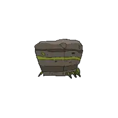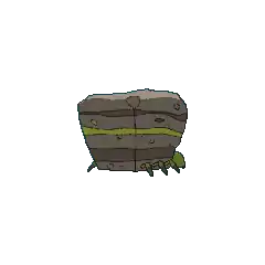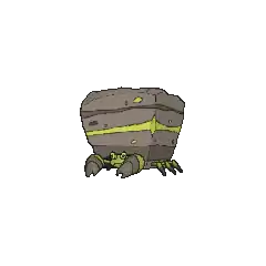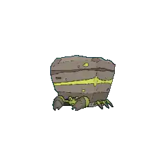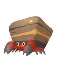 Crustle is based on a hermit crab. Its shell resembles a block of stratum rather than an actual shell, though the design also seems to resemble ornately-colored hermit crab shells.