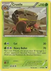 Crustle (Japanese: イワパレス Iwapalace) is a Grass-type Stage 1 Pokémon card. It is part of the Dark Explorers expansion.