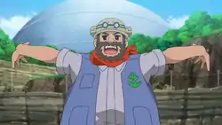 He met Ash, Goh, and Chloe while they were searching the Museum's excavation site attraction for Fossils to restore. His enthusiastic showing of a Claw Fossil to the Trainers and expertise encouraged them to find a fossil for themselves. He also invited them to visit the restoration room once they found a Fossil so that he could restore it.