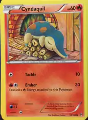 Tackle and Ember are both moves in the Pokémon games that Cyndaquil can learn. This card's Pokédex entry comes from Pokémon Y.