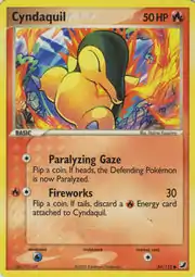 Cyndaquil (Japanese: ヒノアラシ Hinoarashi) is a Fire-type Basic Pokémon card. It is part of the EX Unseen Forces expansion.