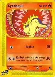 Cyndaquil (Japanese: ヒノアラシ Hinoarashi) is a Fire-type Basic Pokémon card. It is part of the Expedition Base Set.