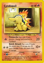 Cyndaquil (Japanese: ヒノアラシ Hinoarashi) is a Fire-type Basic Pokémon card. It is part of the Neo Genesis expansion.