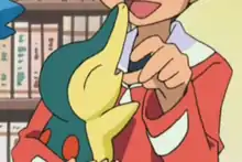 Professor Elm owned a Cyndaquil that was kept in his lab and first appeared in Murkrow Row. He joined Gold's team to rescue the Totodile stolen by the thief Silver and was nicknamed Exbo for the explosive flames on his back. He later evolved into a Quilava and then a Typhlosion.