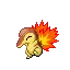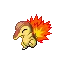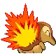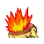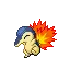 "A Fire Mouse Pokémon. It's a timid creature that often curls up into a ball. When threatened, it flares up the flames on its back to scare off enemies. When it's angry, it can produce powerful flames, but when it's tired, it has trouble producing fire and suffers from incomplete combustion. When it levels up, it evolves into Quilava. Its squinty eyes are adorable."