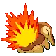 When released from a Poké Ball, Cyndaquil will aim a Flamethrower diagonally towards the ground in one direction. It is one of the easiest Pokémon to avoid, however. It can also be knocked off the screen.
