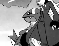 Garchomp is Cynthia's main battling Pokémon in Pokémon Adventures. Garchomp is well trained enough that she can battle even without her Trainer giving her commands. Garchomp first appeared with her Trainer in Ring Around the Roserade II, where she held Cynthia's coat while Cynthia helped train Platinum.