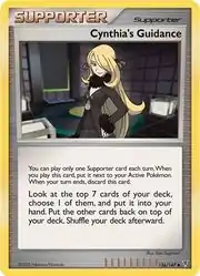 Cynthia's Guidance (Japanese: シロナの導き Shirona's Guidance) is a Supporter card. It is part of the Supreme Victors expansion.