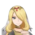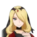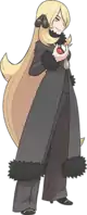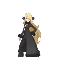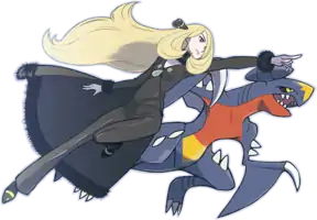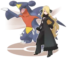 Cynthia (Japanese: シロナ Shirona) is a Pokémon Trainer in Pokémon Masters EX, based on the character of the same name in the core series games. She forms a sync pair with Garchomp, which is capable of Mega Evolving. The sync pair can be obtained through limited-time sync pair scouts, first available on January 1, 2020. The pair's potential can be upgraded to 6★ EX from November 23, 2020, which unlocks Cynthia's EX Style.