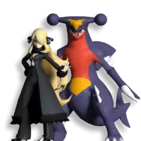 | Artwork of Cynthia and Garchomp in Pokémon Masters EX |