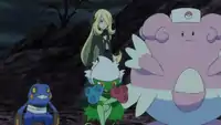 In The Needs of the Three! and The Battle Finale of Legend!, Cynthia helped Ash and his friends protect the lake guardians and put a stop to Team Galactic's plans at Spear Pillar.