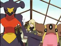 In Losing Its Lustrous! and Double Team Turnover!, Cynthia, along with Ash, his friends, her grandmother and Officer Jenny's police officers, tried to stop Team Galactic from stealing the Lustrous Orb at Celestic Town.