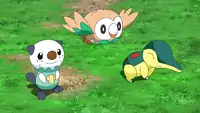 | Cynthia offered to Ash, Dawn, and Goh a choice between Oshawott, Rowlet, and Cyndaquil. These Pokémon took part in a Catching Competition where the three Trainers must catch them within three minutes. Cynthia also revealed that these Pokémon are meant to help her learn more about the Sinnoh region's past and their effects on these Pokémon.