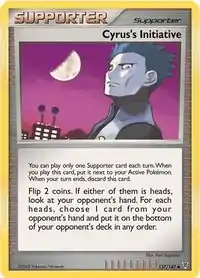 Cyrus's Initiative (Japanese: アカギの先制 Akagi's Initiative) is a Supporter card. It is part of the Supreme Victors expansion.
