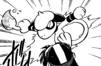 | Smea-Smea (Japanese: ドブルくん Doble-kun) is Mary's only known Pokémon. It was given to Mary from her friend, Whitney. It first appeared subjecting Gold to a prank while he was sleeping by using its tail to draw over his face. Gold subsequently chased after Smea-Smea all the way to Goldenrod's Radio Tower, where he found out that it belonged to Whitney and DJ Mary. Smea-Smea appeared again along with Mary while Whitney was battling against Pryce's Suicune ice sculpture. During the final battle against the Masked Man, Smea-Smea was seen mimicking Entei's flames via its Sketch, making it capable of permanently melting the Masked Man's re-freezing ice. In the HeartGold & SoulSilver chapter, Smea-Smea was revealed to have been returned to Whitney.