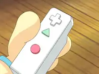 - The remote control for the evolution machine looks similar to a Wii Remote, and even has the wrist strap. Also, when Meowth presses the button on the remote to transform the machine into the robot, just after the click, he says "whee", sounding like "Wii".