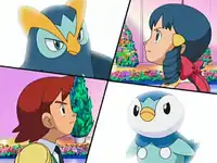 Dawn has Piplup use Whirlpool, and Prinplup boldly dives into the vortex to battle Piplup. It's a close battle, but in the end, victory goes to Dawn and Piplup, earning them the Floaroma Ribbon! Of course Kenny is disappointed, but he promises to battle Dawn again at another Contest. And with that, it's time to head for Eterna City and Ash's next Gym battle!
