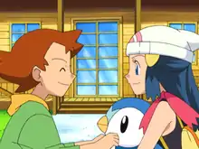 Outside the hotel, a girl talks to her Swinub in helping her out. Dawn calls out her name, Leona, Dawn's childhood friend. Leona happens to call her Dee-Dee, which upsets Dawn, but Leona is still happy to see her. When asked about how business is going, Leona admits that it has been sluggish. Leona remembers watching Dawn's most recent Contest performance, which slightly upsets Dawn. Dawn introduces Leona to Ash and Brock, mentioning that she met Dawn in Kindergarten. Hearing that Leona is a Trainer as well, Ash asks her for a battle, but Leona doesn't have the time. Dawn is eager to jump in the hot spring, but before Leona can say anything, they're off.
