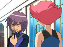 When Maylene runs off, Dawn follows her to have a candid one-on-one conversation about her doubts and fears. This encourages Maylene to open up about her own misgivings. Team Rocket spoils the moment by showing up and offering Lucario the chance to join their team instead, but Lucario isn't interested. After Lucario blasts Team Rocket, Dawn reminds Maylene that Lucario still wants to battle together. And now, when Dawn challenges Maylene to a battle, Maylene uncertainly accepts.