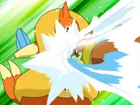 Buizel is still annoyed with Pikachu, forcing Ash to call its attention back to the fight. Buizel turns Quagsire's Ice Beam attack into a frozen Aqua Jet combo, knocking out Quagsire, and Buizel's real opponent enters the ring: Floatzel! Floatzel takes everything Buizel can dish out and comes back for more, using its flotation collar to help absorb incoming attacks. Then, confused by its own attack, Buizel is forced to take a break while Pikachu subs in, but Floatzel soon has Pikachu on the ropes. Buizel recovers and takes over the fight, giving Pikachu a high-five, and knocks out Floatzel with an aerial Water Pulse. With that, Ash's team scores a clear victory earning him a brand-new Fen Badge!