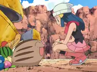 Dawn manages to get Swinub to track Team Rocket's ship for her. When she catches up to the crooks, Team Rocket tries to attack but Swinub uses Ice Shard to stop James' Carnivine and Jessie's Yanmega. Swinub then saves the day a second time by breaking open the ship so all the Pokémon can escape. Dawn has the situation well in hand, but Ash and the others catch up just in time to help her send Team Rocket on their way. Mr. Backlot is delighted that his Pokémon are safe again, and Dawn asks Swinub if it wants to come with her. Swinub agrees, so now Dawn has a new Pokémon friend!