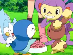 Over tea, Dawn asks to use the kitchen to make Poffins for her Pokémon. Monica offers the group some garden fresh Berries and guides them through the cooking process. A plate of Dawn's Poffins are set on the table and Piplup is ready to dig into them. However the greedy Swinub follows the sweet aroma and immediately begins to gorge itself on the baked treats, leaving Piplup devastated. To make amends, Dawn reassures Piplup that she'll make some more Poffins later.