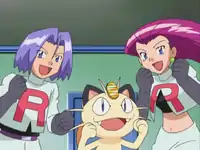 - In the original Japanese version, Jenny's Chatot refers to James once as "Kosanji" while trying to say his name. This name for the most part is used to refer to Butch (Kosaburō). In the dub, she calls him "Lames" and also calls Jessie "Messy", which is what Butch called them in Showdown at the Oak Corral.