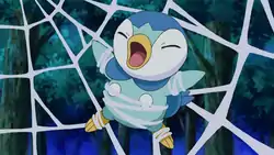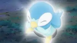 - After Piplup uses Whirlpool and destroys the mecha, when Piplup checks on Prinplup, its wings are the same color as its head and "cape" for a split second.