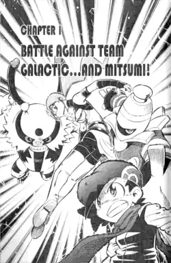 Battle Against Team Galactic...and Mitsumi! (Japanese: ギンガ団・ミツミとの対決! Galaxy Gang: Showdown with Mitsumi!) is the eighteenth chapter of the Pokémon Diamond and Pearl Adventure! manga.