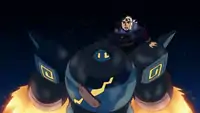 The castle, however, begins to go into overdrive and launch higher into the atmosphere. At the chaotic speed the castle is flying, Damon is thrown off the side of a balcony, presumably to his death; however, he is actually saved by Juanita's Golurk and returns to try to rescue Ash. He is powerless until Victini uses V-create to destroy the Protecting Pillars once and for all, at which point he reenters the castle and manages to give Ash a blanket.