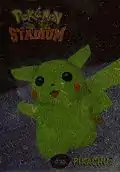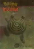 Danone Pokémon Stadium Tip Cards were distributed in packages of Danone Go yogurt products in Canada in the year 2000 to promote the release of Pokémon Stadium. There were a total of 48 collectible cards. Each card featured anime artwork of the Pokémon on the front. On the back, various stats are given such as a vulnerability chart, information on a useful move that the Pokémon can learn in the games, and a suggested team ("the invincibles") to use with the Pokémon in Pokémon Stadium. Occasionally, a party list for a specific Trainer in the game (and that specific Pokémon's moveset) will be given instead of "the invincibles".