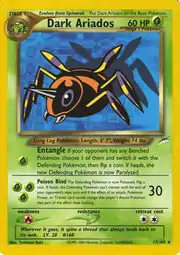 Dark Ariados (Japanese: わるいアリアドス Bad Ariados) is a Grass-type Stage 1 Dark Pokémon card. It is part of the Neo Destiny expansion.