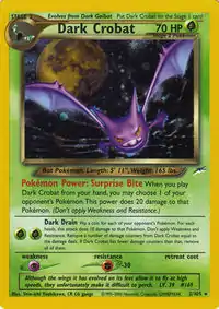 Dark Crobat (Japanese: わるいクロバット Bad Crobat) is a Grass-type Stage 2 Dark Pokémon card. It is part of the Neo Destiny expansion.