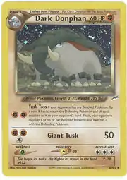 Dark Donphan (Japanese: わるいドンファン Bad Donfan) is a Fighting-type Stage 1 Dark Pokémon card. It is part of the Neo Destiny expansion.