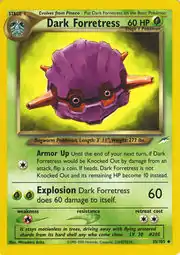 Dark Forretress (Japanese: わるいフォレトス Bad Foretos) is a Grass-type Stage 1 Dark Pokémon card. It is part of the Neo Destiny expansion.