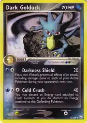 Dark Golduck (Japanese: わるいゴルダック Bad Golduck) is a dual-type Water/Darkness Stage 1 Pokémon card. It is part of the EX Team Rocket Returns expansion.