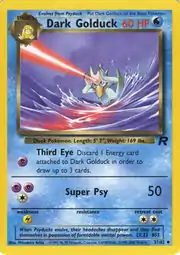 Dark Golduck (Japanese: わるいゴルダック Bad Golduck) is a Water-type Stage 1 Pokémon card. It is part of the Team Rocket expansion.