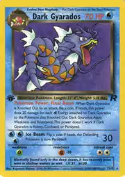 Dark Gyarados (Japanese: わるいギャラドス Bad Gyarados) is a Water-type Stage 1 Pokémon card. It was first released as part of the Team Rocket expansion.