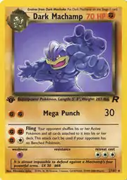 Dark Machamp (Japanese: わるいカイリキー Bad Kairiky) is a Fighting-type Stage 2 Pokémon card. It is part of the Team Rocket expansion.