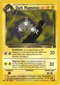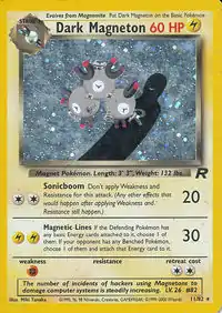 Dark Magneton (Japanese: わるいレアコイル Bad Rarecoil) is a Lightning-type Stage 1 Pokémon card. It is part of the Team Rocket expansion.