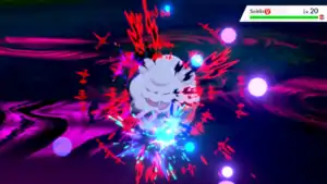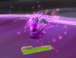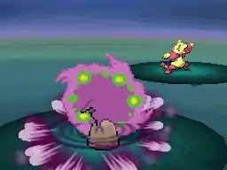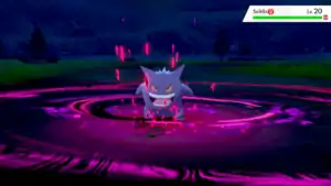 Gengar forms a dark purple orb of energy in its hands. It then fires a beam of dark purple circles from the orb at the opponent. | ||